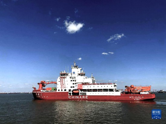 2020年11月10日,中國第37次南極科學(xué)考察隊乘坐“雪龍2”號極地科考破冰船從上海起航,奔赴南極執(zhí)行科學(xué)考察任務(wù),這是“雪龍2”號極地科考破冰船駛離碼頭。新華社發(fā)(中國極地研究中心供圖)